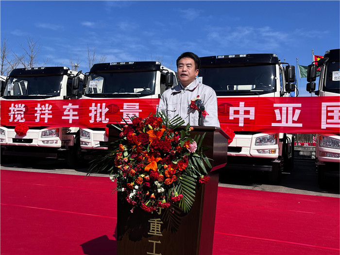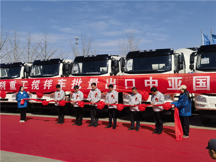 在 3 月 21 日上午,亞特重工的廠區內熱鬧非凡,一場意義重大的發車儀式盛大舉行。20 臺混凝土攪拌運輸車身披紅綢,整齊排列,宛如即將奔赴戰場的勇士,蓄勢待發。它們的目的地是遙遠的吉爾吉斯斯坦,這一征程不僅是車輛的運輸之旅,更是亞特重工發展歷程中的一座重要里程碑,標志著企業成功叩開中亞市場的大門,實現了首次出口中亞地區的重大突破。